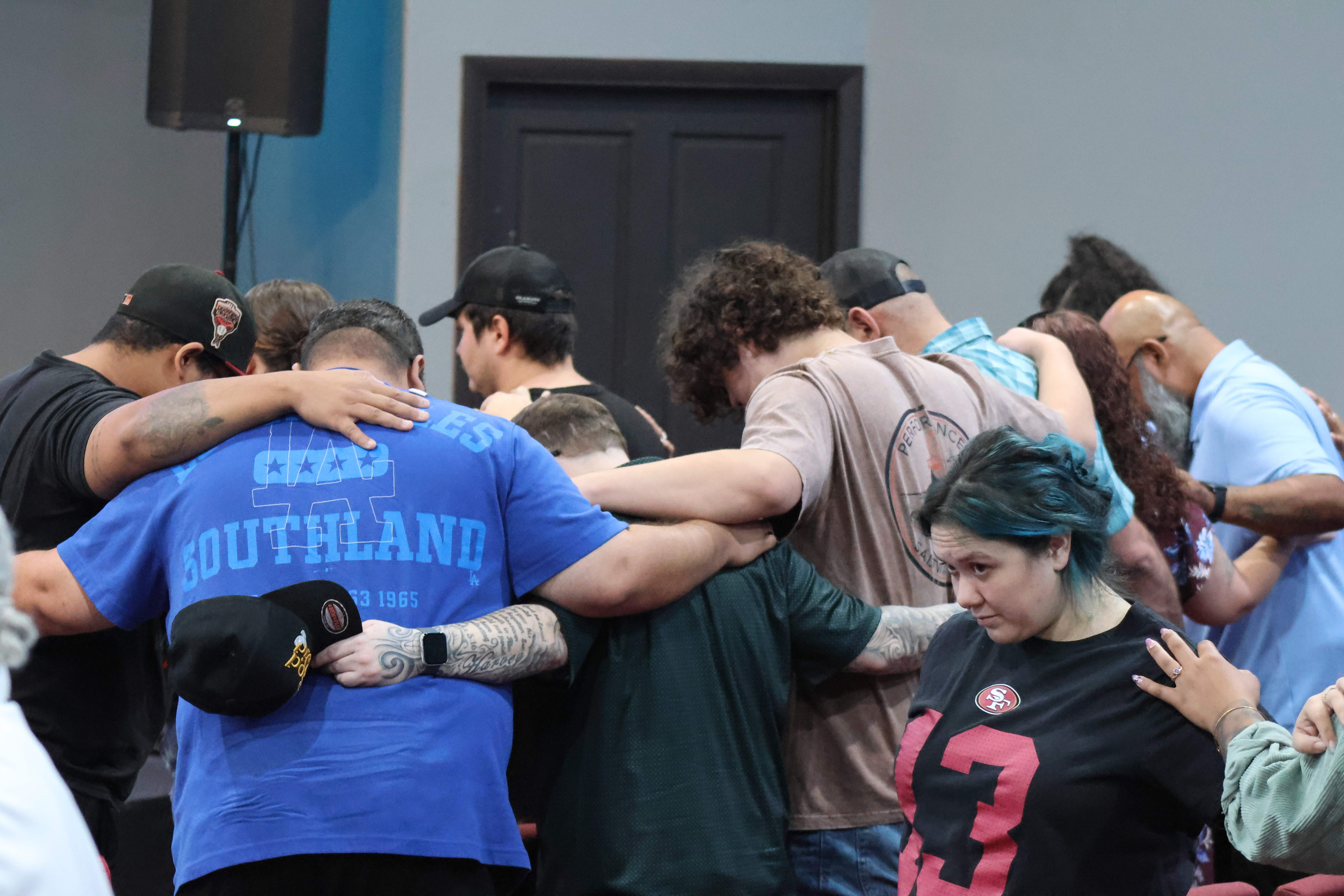 The atmosphere is quiet and reflective, creating space for individuals and families to seek the Lord personally while also praying together as a church body.